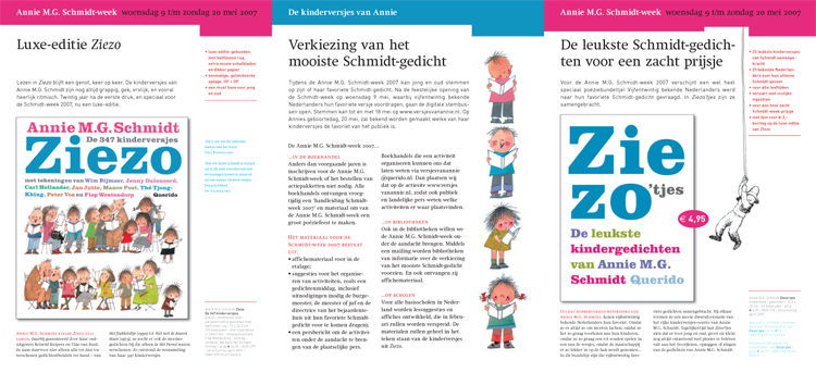 | Voor- en achterzijde flyer van werk Annie M.G. Schmidt | |||||||||||||||||||||||